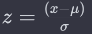 2) Z-scroe Normalization : Standardization라고도 불리며, 표준화라고 불린다. 이 "표준화"라는 용어는 "표준 정규화"를 의미하며, Z-score 라는 표준화된 방식을 활용해 데이터의 범위를 조정하는 것이다.